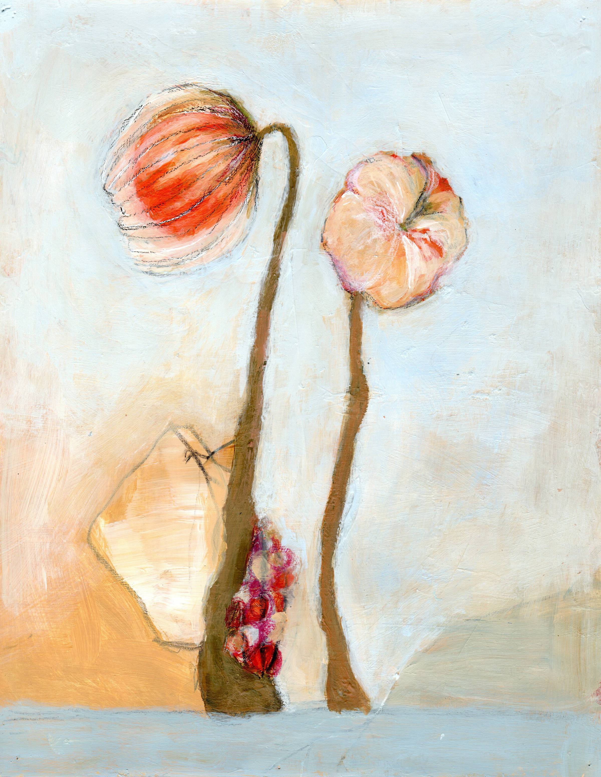The slime mold paintings (8.5 x 11, acrylic on paper) are currently available, as are other artworks on my website.
