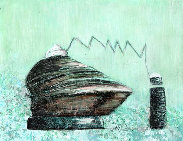 The 3 mussel paintings (8.5 x 11, acrylic, markers and wax pencil on paper) are currently available for purchase, as are other artworks on my website.